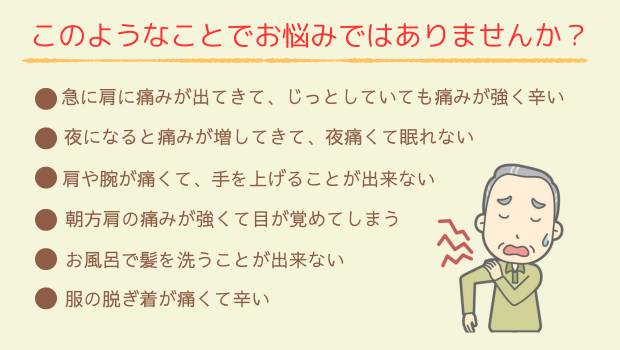 ・急に肩に痛みが出てきて、じっとしていても痛みが強く辛い。